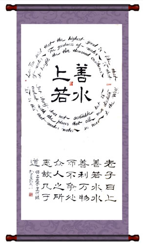 笔名:七孔石,润石,Seven Hole Stone,S.H.Stone。 喜欢传统的中国书法艺术,临习过多种书体碑贴,其中尤以《礼器碑》用功最多。近十几年来,在传统书法基础上,创新了具有自己特点的笔法和构图法,并创作了一批中英文书法作品。