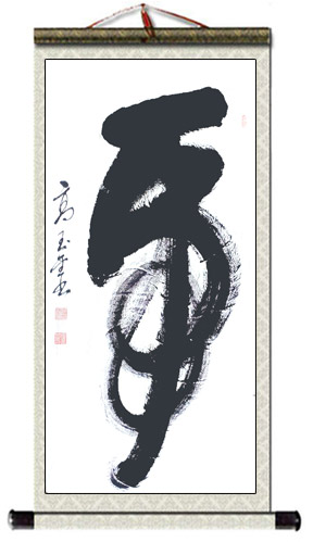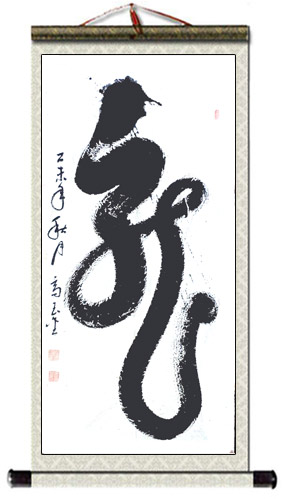 高玉金太极书法字中含字、字中含词、字中含句、字中含意,融表象与表意为一体,融书法于吉祥为一体;融文字于祝福为一体,超越了汉字记录和传达语言的符号功能成为一种艺术。使书法在虚实、浓淡、远近、大小中达到传神、写意、抒情之艺术效果,达到雅俗共赏的艺术佳境。